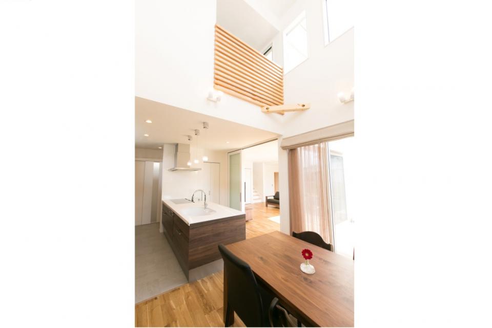 採光にもこだわり、南側に建物が建つことがあっても光が入るように吹抜けや大きな窓を設けました。