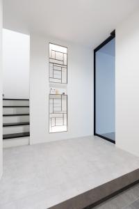 このモノトーンでホテルライクな家の内観デザインとインテリア設計。