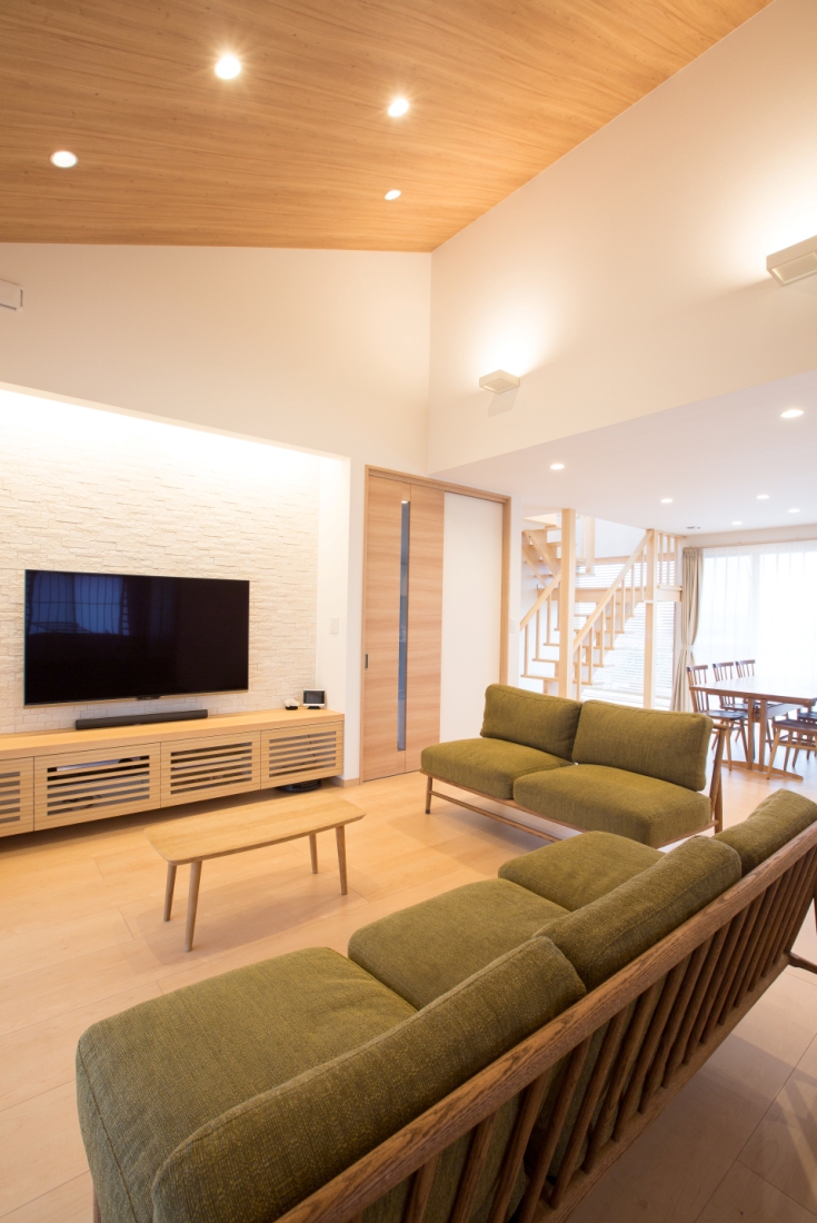 天井が高く、木の温かみを感じるリビングはゆったりと落ち着く雰囲気です。