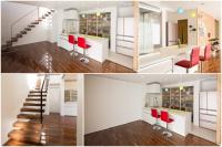 デザイン階段や広々とした吹抜けのある玄関ホールと、生活領域であるLDKの間に、可動間仕切りを配置し、一体化して使用できるように工夫しました。