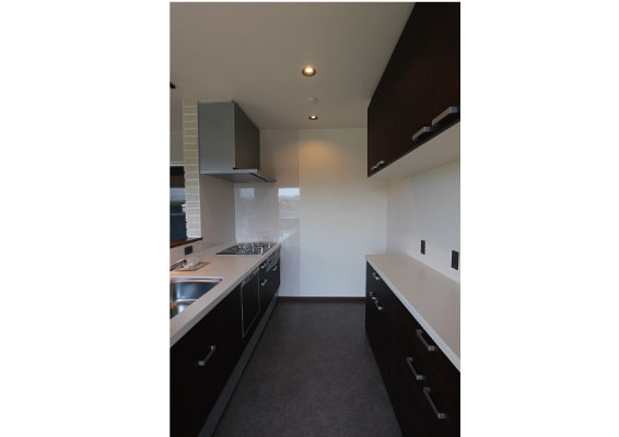 キッチンカウンター前の壁は白い煉瓦タイルでヴィンテージな空間を演出しております。