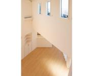 スキップフロアはリビングのご家族とコミュニケーションの取りやすい位置に設計(^^) 造作の収納スペースも完備