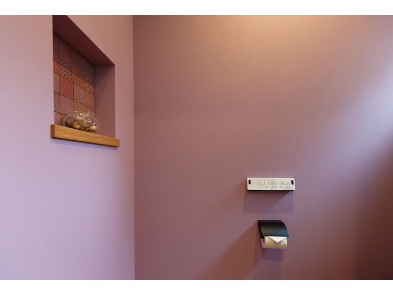水回りの内装にもこだわりました タイルやお施主様の桧が花を添えます