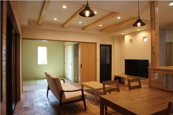 和の空間を生活の中心に。家族がくつろぐ平屋風
